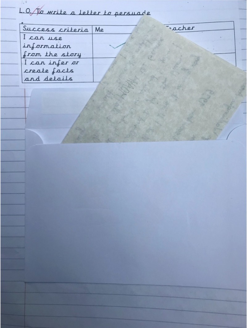A shorter writing opportunity might take the form of a note or short, informal letter, it could be a postcard or a diary entry. Sometimes it might just be a sentence strip or post-it note. Shorter writing opportunities arise when we want children to practice a given skill within a sequence and write something that feels cohesive as they journey through a book. In FArTHER, children write in role as the boy as he recounts the events of his day with his dad, whilst practicing the present perfect tense. In The Odd Egg, children write a diary entry practicing using adjectives to describe feelings. The key is that these types of writing don’t need too much scaffolding or teaching – the ‘text-type’ is not the focus here: rather the context and purpose drives the writing and a strong model combined with the teaching of the skill and additional word banks and sentence starters should be enough to get children writing. ‘Instant’ publishing works really well here, as children write straight on to ‘fancy’ paper to write their diaries or publish directly onto a real postcard. The use of different writing media (paper and pens) is vital here to engender a sense of ‘real’ writing. This type of writing is usually completed within one session, without the need for planning and drafting.