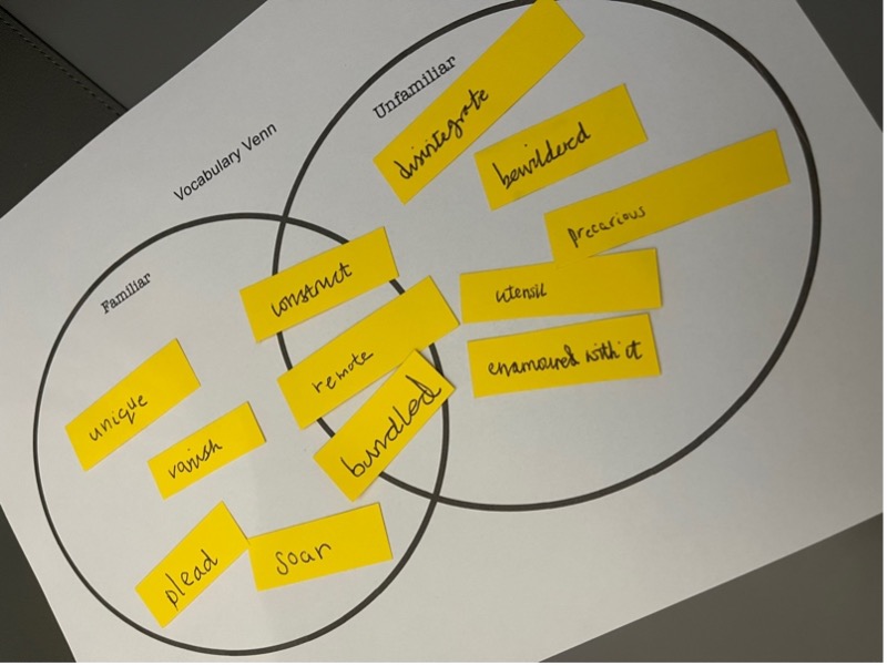 When exploring a new text, work on discussing and sorting language in context into language which is familiar, unfamiliar, and somewhere in the middle – perhaps children recognise the language but aren’t entirely sure of its meaning in this context. Similarly, words can be traffic light colour coded from red, to amber, to green (see our Classroom Toolkit for a template of these). This form of vocabulary exploration allows you to get to grips with pupils’ prior knowledge of language and flags up any potential misconceptions, giving children the reassurance that it’s ok to not know what words mean and that in fact, this is the basis for language development. This sort of initial exploratory activity can then be further developed into Shades of Meaning tasks and exploring the importance of context through Zones of Relevance as you unpick language further.