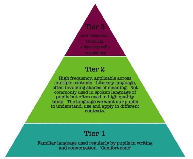 Exploring and unpicking authors’ language choices prior to sharing these with the children is key. Prior to teaching, try to look at your text through the eyes of your pupils (this will of course vary with each class and cohort). Do you notice any red flags? Subject-specific terminology and technical language (often referred to as Tier 3 vocabulary) tend to be the most obvious. Pay particular attention instead to idiomatic or literary language and turns of phrase, also known as Tier 2 phrases - language which can be used across a range of contexts but which our pupils do not use regularly in their own lives. This is the language we want them to be able to understand, use and apply. What background knowledge would your pupils need in order to access and understand these?