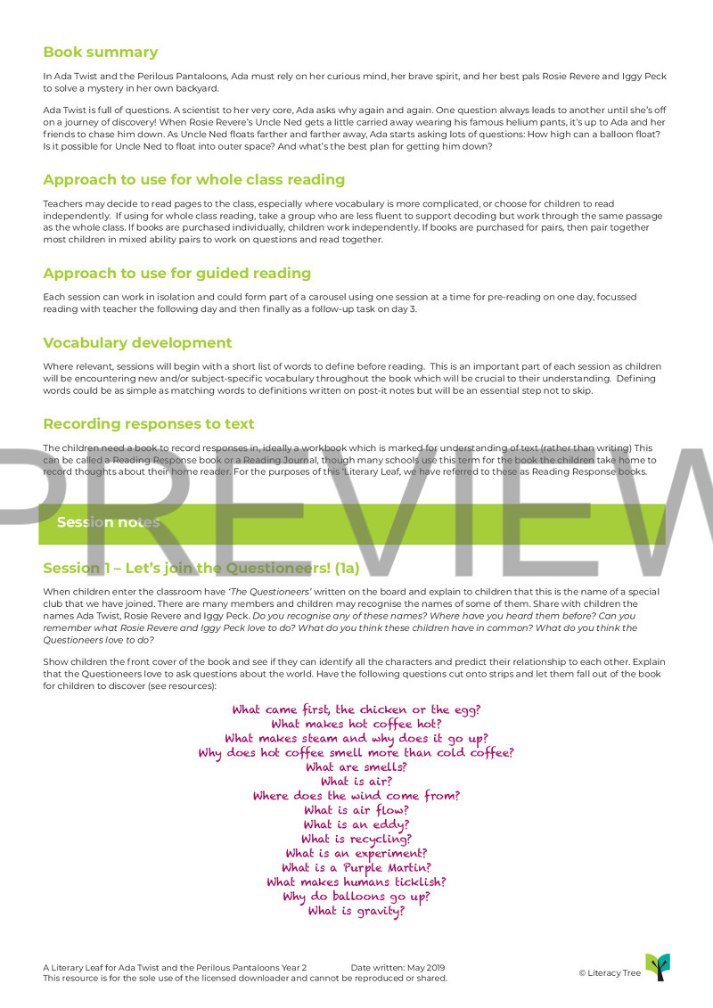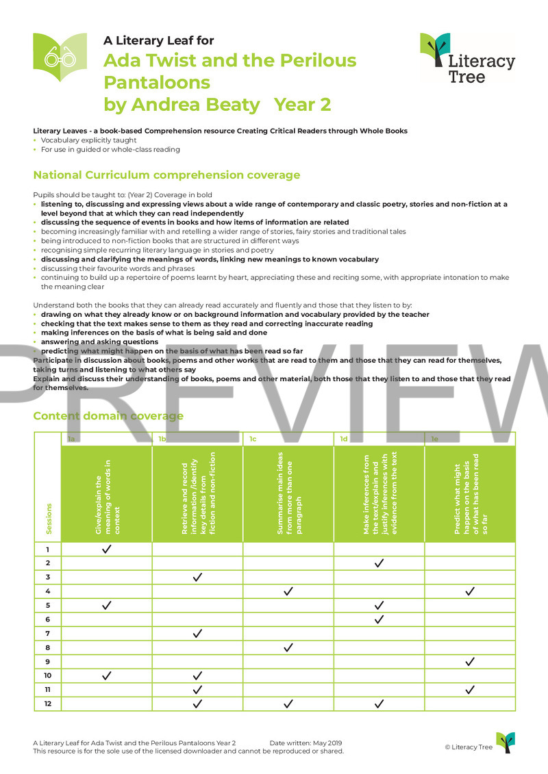 This is a 12-session Literary Leaf for the short story, Ada Twist which we recommend is used at the end of Y2 as it has lots of Y3 coverage within. It starts with some questions and predictions before looking at some of the scientific knowledge and concepts presented within the text. All the questions and activities help children to make links and inferences which they use to predict at various points within the text.