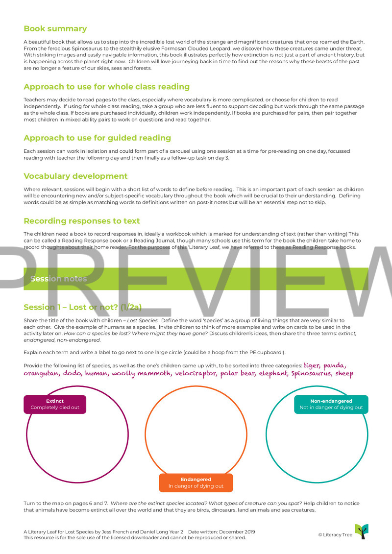 This is a 12-session Literary Leaf for Lost Species by Jess French and Daniel Long which covers the full range of the content domains at KS1, as well as extending into KS2. Children start by sorting information and identifying meaning from new vocabulary. They then retrieve in order to explore how to use tables. Simple inferences are made through exploring the thoughts of scientists.