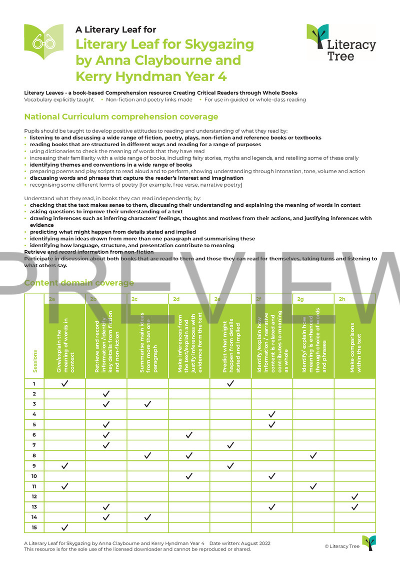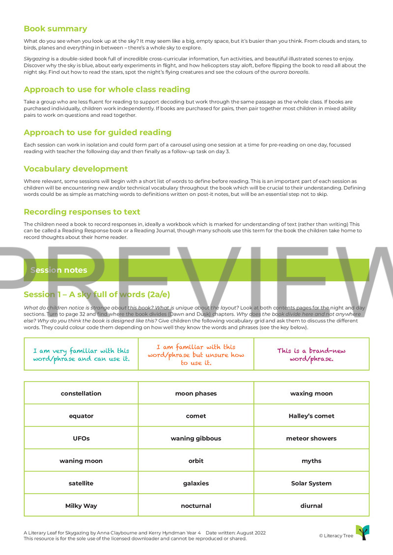 This is a 15-session Literary Leaf for Skygazing by Anna Claybourne and Kerry Hyndman. This Literary Leaf covers all aspects of the Key Stage 2 content domain and offers many rich opportunities for children to develop their knowledge of astronomy, weather and the technology that they might spot in the skies, as well as wildlife. Children will find the answers to burning questions such as: how is a rainbow formed? Why is the sky blue? Where does rain come from? What causes day and night? There are also many practical experiments to carry out at home or in the classroom. Children will have opportunities to explore specific technical vocabulary and answer a range of investigative questions.