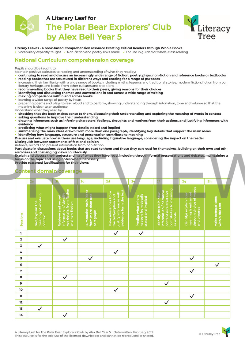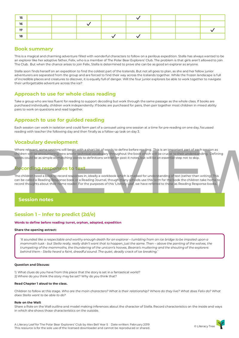 This is an 18-session Literary Leaf for The Polar Bear Explorers' Club by Alex Bell. Children begin by making inferences about the main characters in order to predict what might happen to them, then move on to retrieving facts and studying vocabulary in context. Throughout the leaf, children will be encouraged to use textual evidence to summarise, explain, compare and give opinions. There will also be opportunities to consider events from the point of view of specific characters and consider what the next instalment of the series might entail...