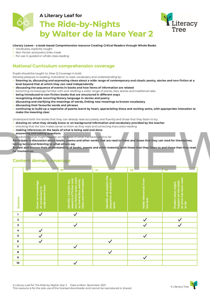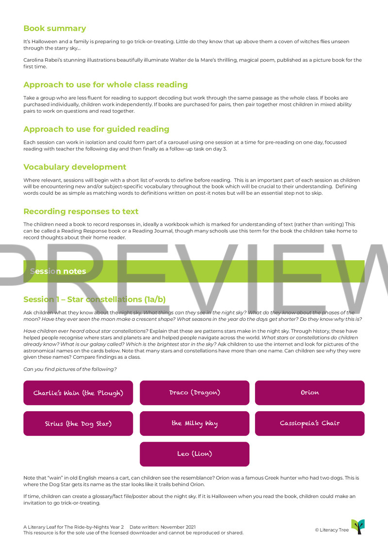 This is a 10-session Literary Leaf for the poem, The Ride-by-Nights by Walter de la Mare. This sequence begins by introducing children to the various constellations referred to in the poem. Children will enjoy listening to this poem being read and, as they get to know it better, enjoy performing it in different ways themselves. Children will complete a range of interactive activates that cover all aspects of the KS1 content domain.