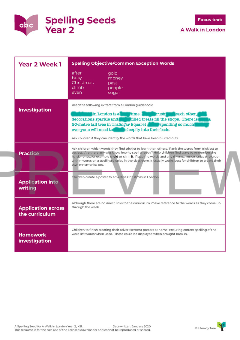 This is a three-session spelling seed for the book A Walk in London by Salvatore Rubbino. Below is the coverage from Appendix 1 of the National Curriculum 2014.
