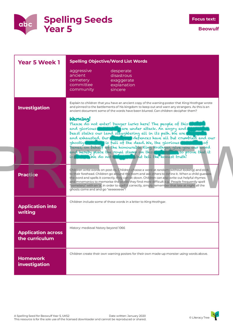 This is a three-session spelling seed for the book Beowulf by Michael Morpurgo. Below is the coverage from Appendix 1 of the National Curriculum 2014.