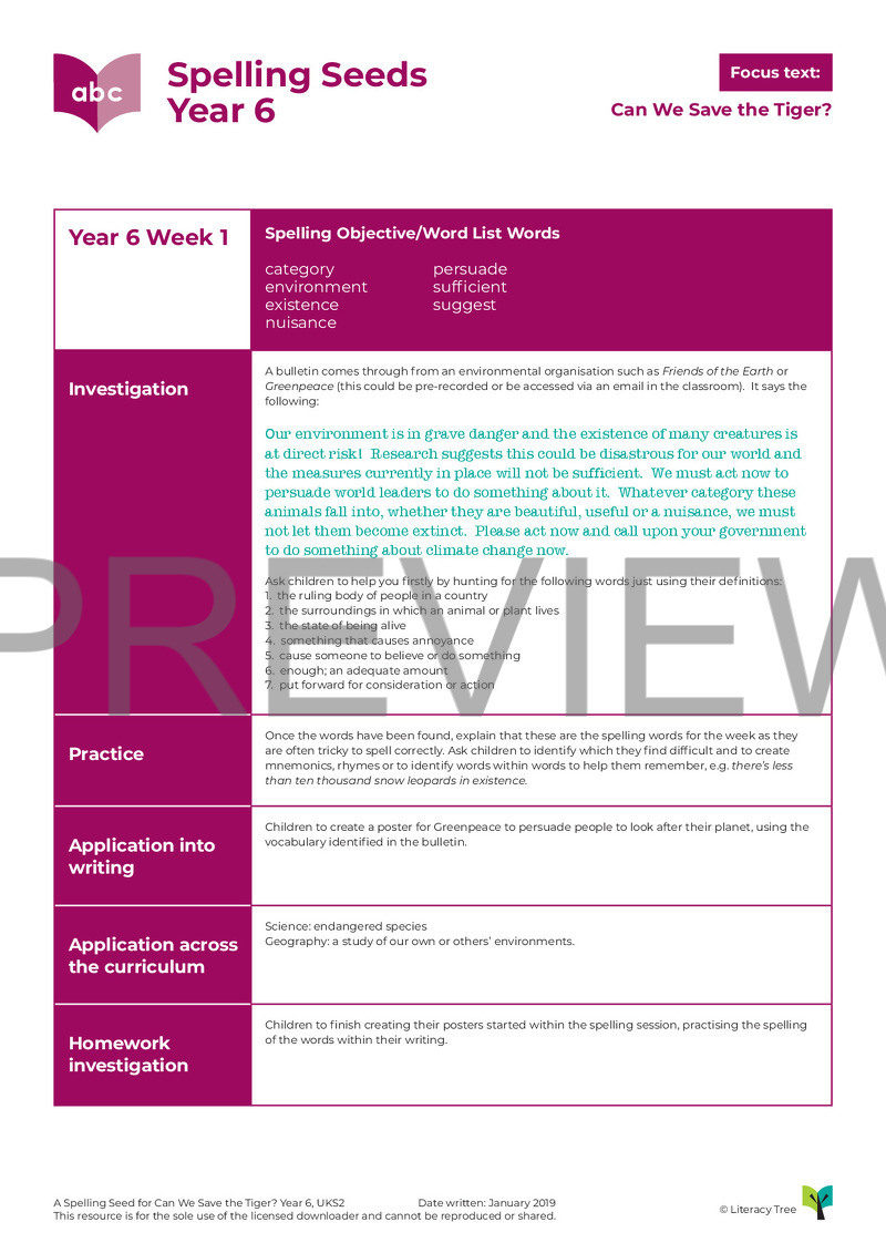 This is a three-session spelling seed for the book Can We Save the Tiger? by Martin Jenkoins. Below is the coverage from Appendix 1 of the National Curriculum 2014.