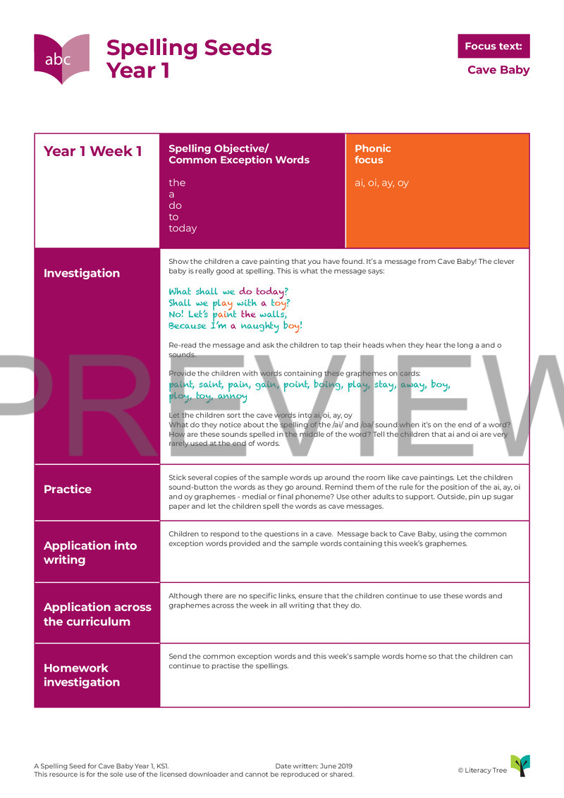 Updated: July 2025 (Please note: A two-session spelling seed is available, contact resources@literacytree.com)