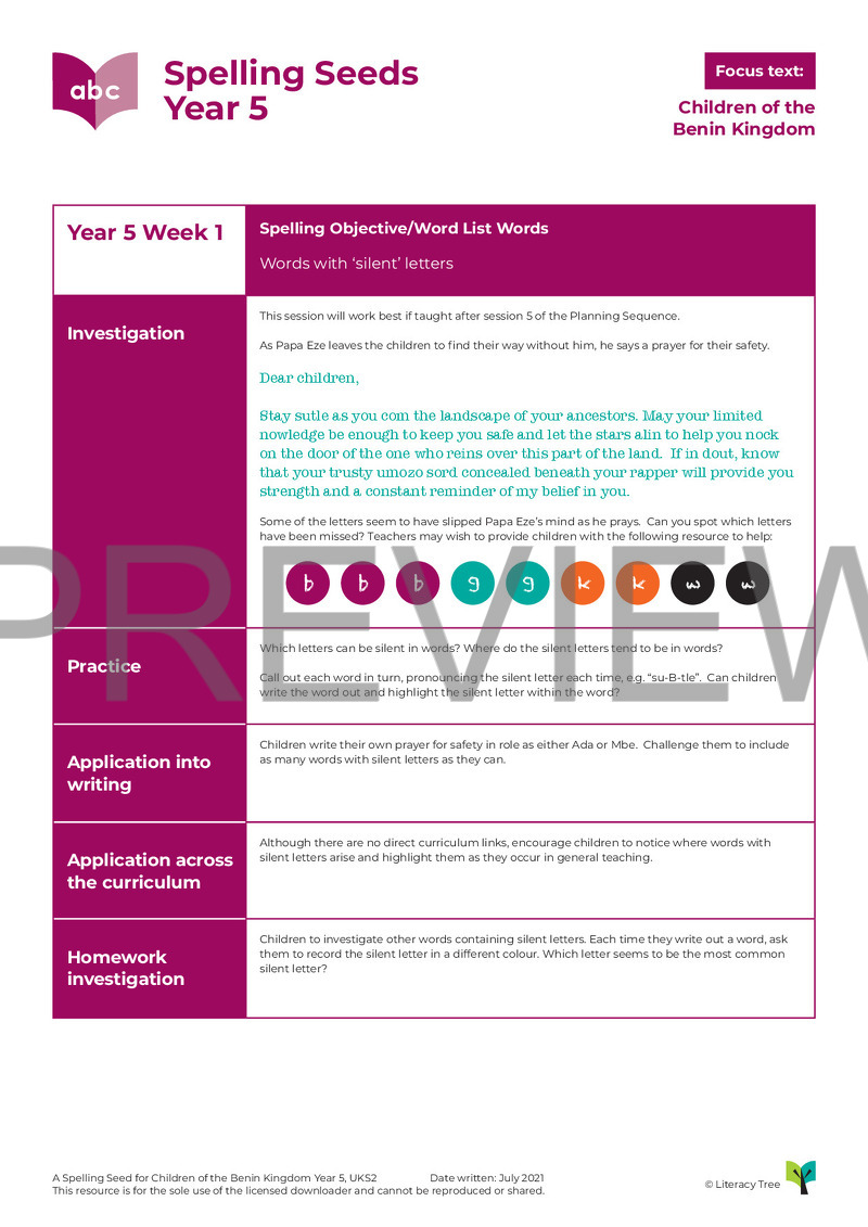 This is a three-session spelling seed for the book Children of the Benin Kingdom by Dinah Orji. Below is the coverage from Appendix 1 of the National Curriculum 2014.
