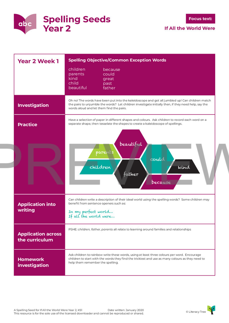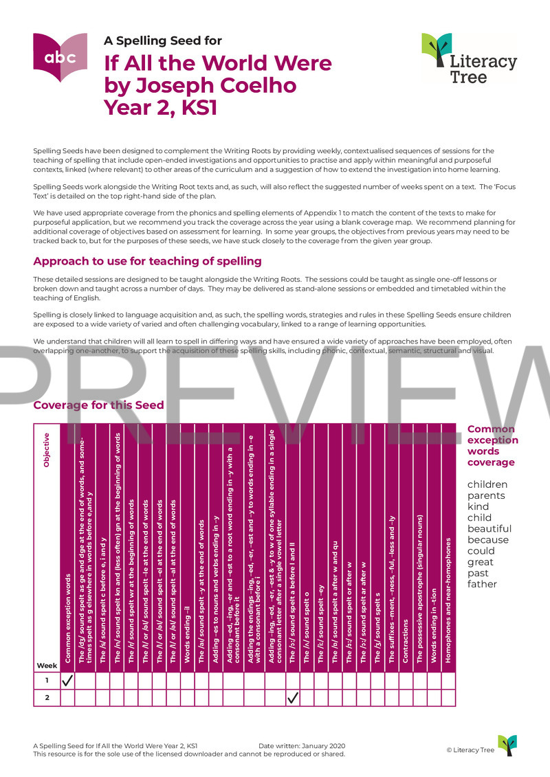 This is a two-session spelling seed for the book If All the World Were by Joseph Coelho. Below is the coverage from Appendix 1 of the National Curriculum 2014.