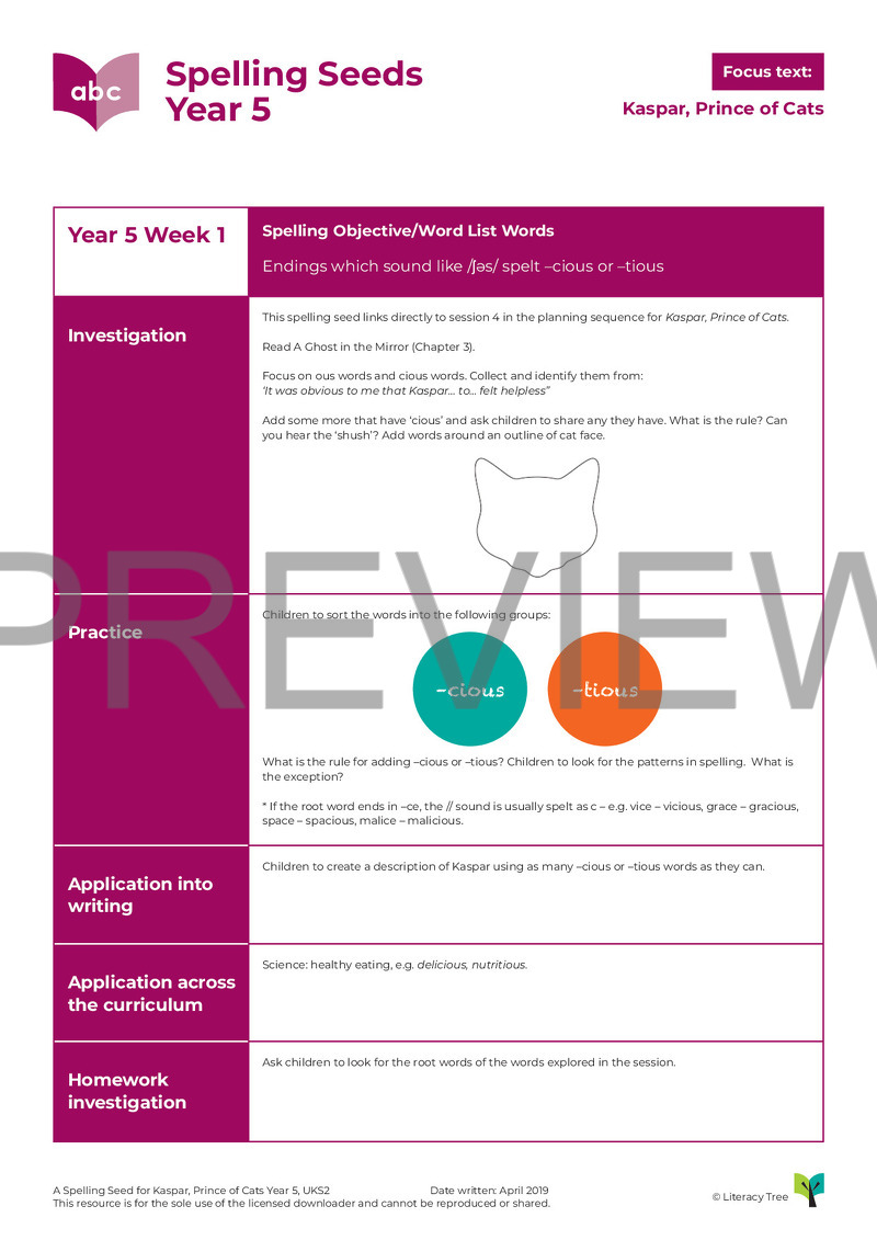 This is a three-session spelling seed for the book Kaspar, Prince of Cats by Michael Morpurgo. Below is the coverage from Appendix 1 of the National Curriculum 2014.