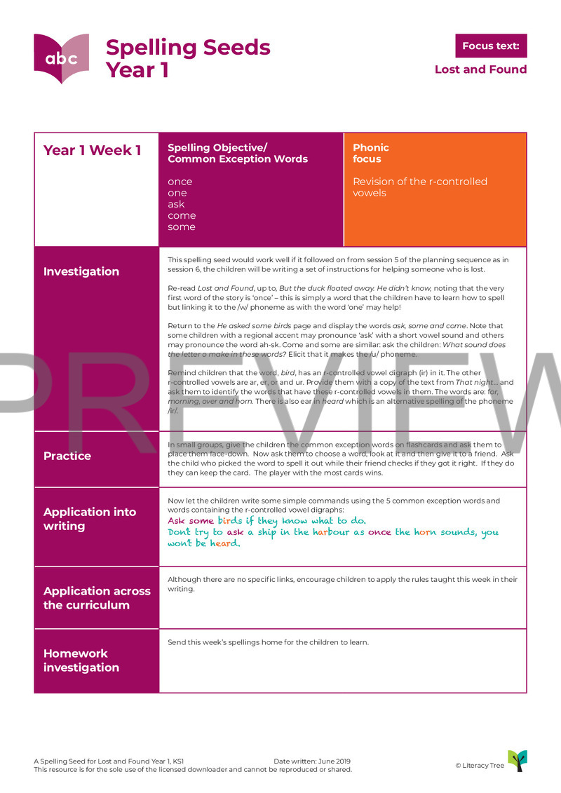 This is a three-session spelling seed for the book Lost and Found by Oliver Jeffers. Below is the coverage from Appendix 1 of the National Curriculum 2014.