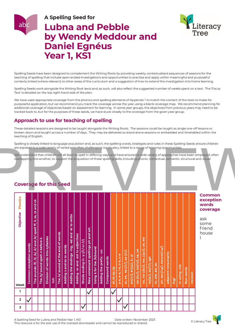 Spelling Seeds have been designed to complement Writing Roots by providing weekly, contextualised sequences of sessions for the teaching of spelling that include open-ended investigations and opportunities to practise and apply within meaningful and purposeful contexts, linked (where relevant) to other areas of the curriculum and a suggestion of how to extend the investigation into home learning.