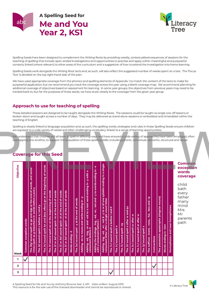 This is a three-session spelling seed for the book Me and You by Anthony Browne. Below is the coverage from Appendix 1 of the National Curriculum 2014.