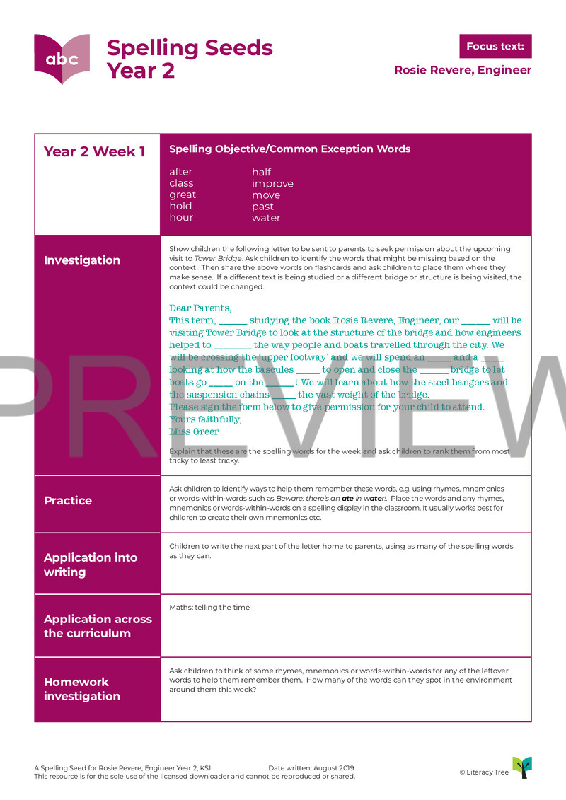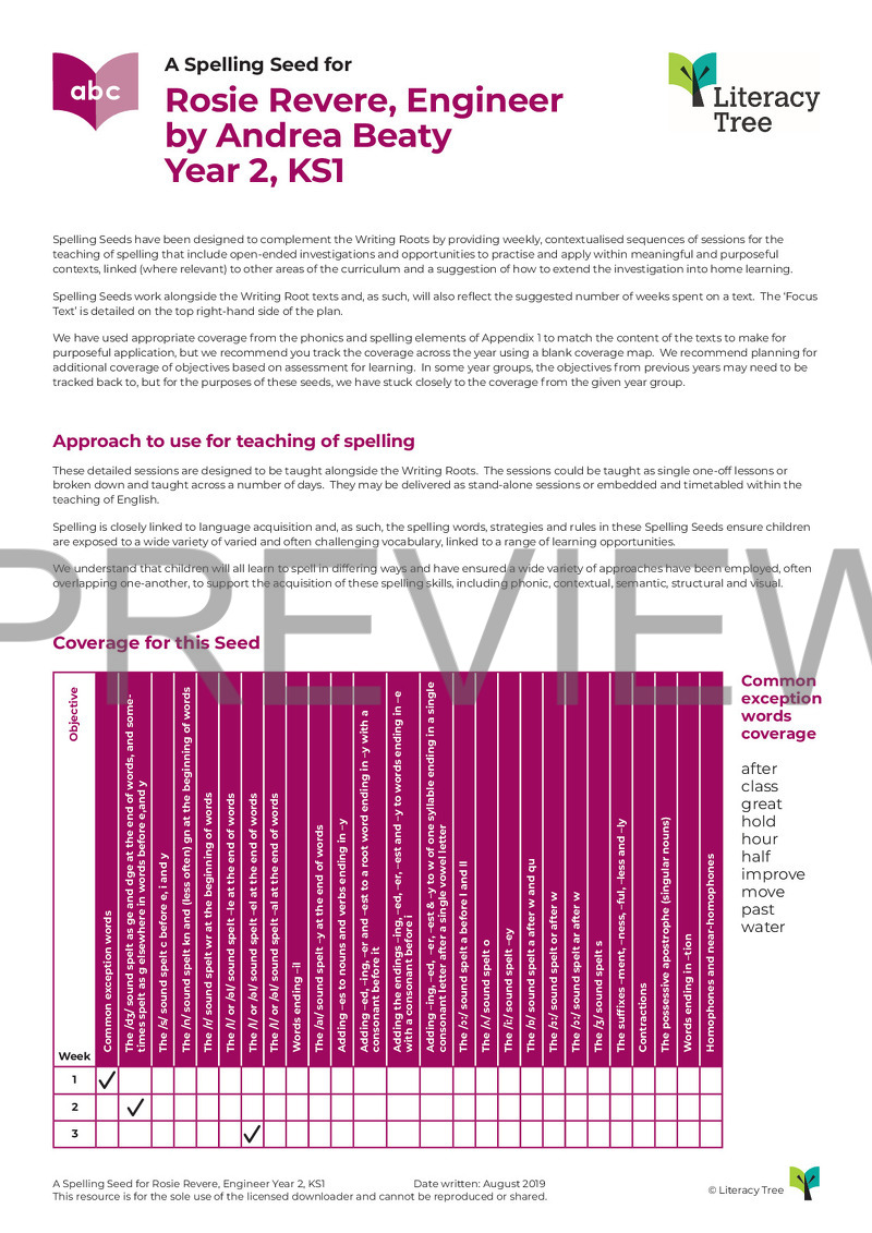 This is a three-session spelling seed for the book Rosie Revere, Engineer by Andrea Beaty. Below is the coverage from Appendix 1 of the National Curriculum 2014.