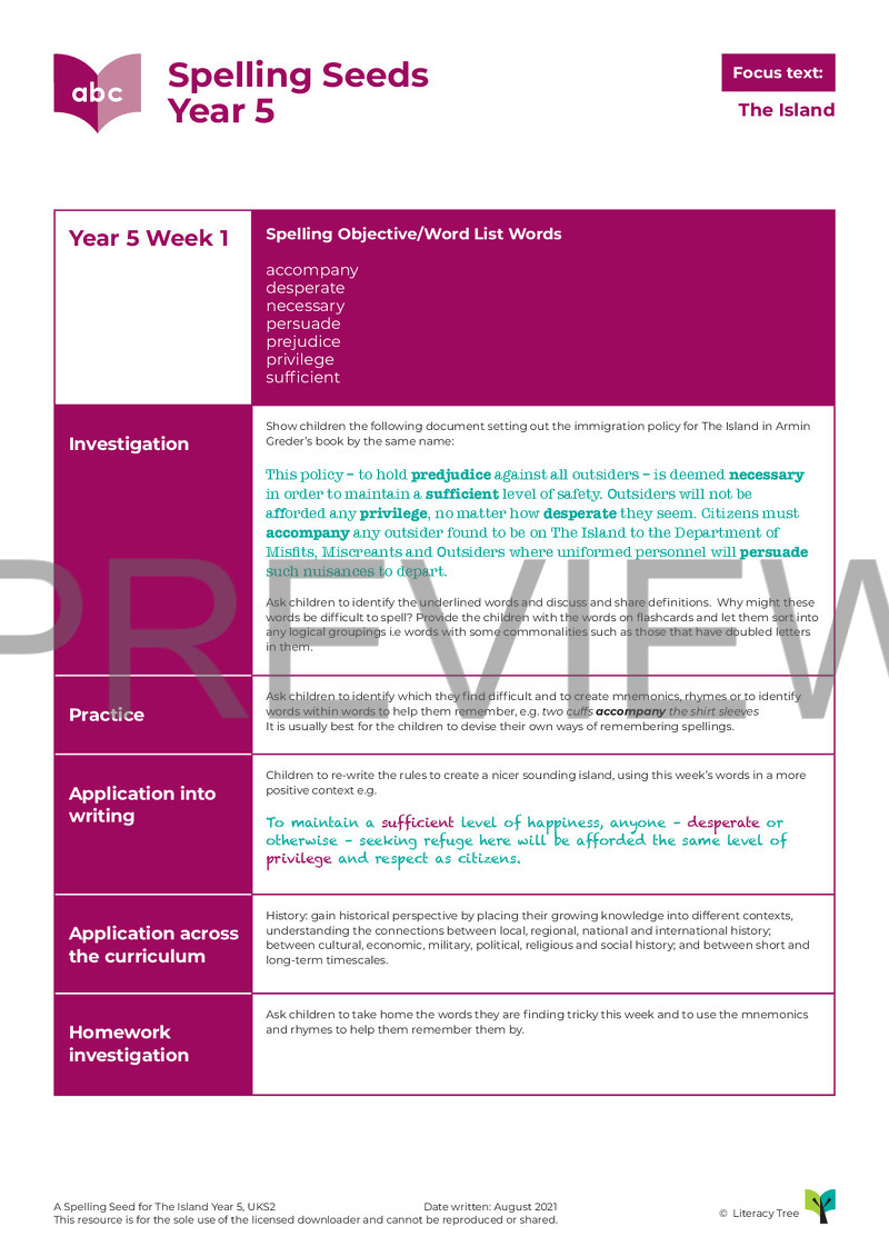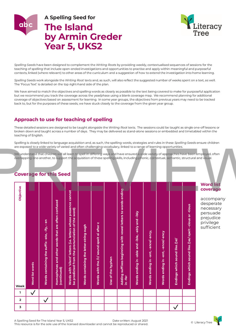 This is a three-session spelling seed for the book The Island by Armin Greder. Below is the coverage from Appendix 1 of the National Curriculum 2014.