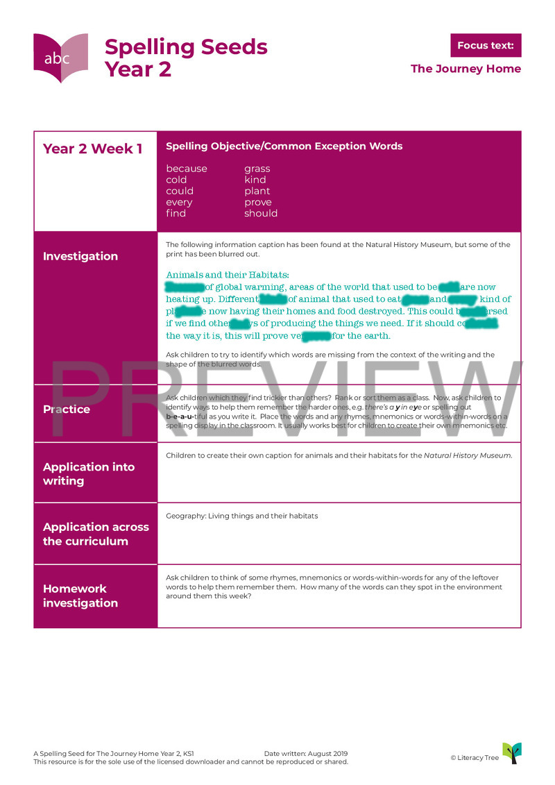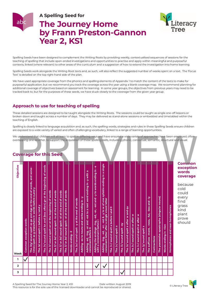 This is a three-session spelling seed for the book The Journey Home by Frann Preston-Gannon. Below is the coverage from Appendix 1 of the National Curriculum 2014.