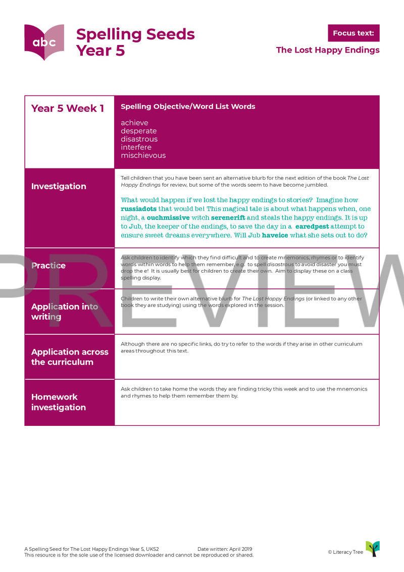 This is a three-session spelling seed for the book The Lost Happy Endings by Carol Ann Duffy Below is the coverage from Appendix 1 of the National Curriculum 2014.
