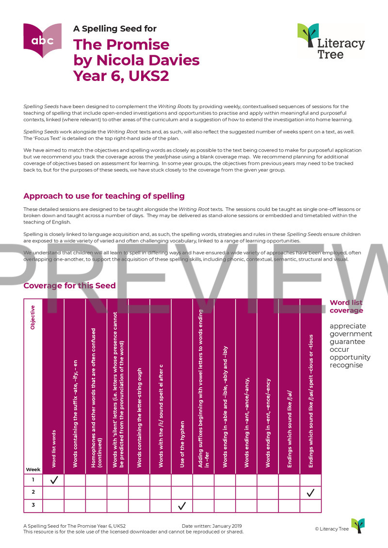 This is a two-session spelling seed for the book The Promise by Nicola Davies. Below is the coverage from Appendix 1 of the National Curriculum 2014.
