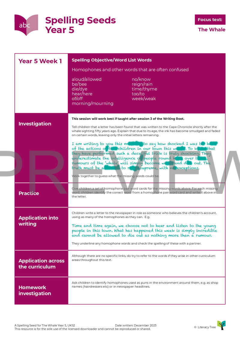 Spelling Seeds have been designed to complement Writing Roots by providing weekly, contextualised sequences of sessions for the teaching of spelling that include open-ended investigations and opportunities to practise and apply within meaningful and purposeful contexts, linked (where relevant) to other areas of the curriculum and a suggestion of how to extend the investigation into home learning.