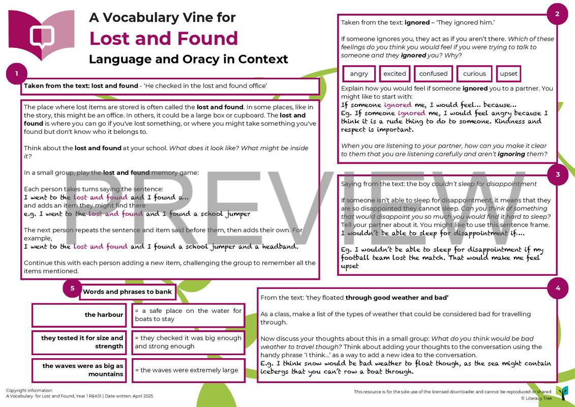 A Vocabulary Vine is designed to be a sister resource to a Writing Root and Spelling Seed. It sits within our wider Teach Through a Text approach by explicitly identifying vocabulary from the book and providing additional opportunities for paired, small group and whole class experimentation with this vocabulary in context. Vocabulary Vines further complement spelling development too through exploration of the morphology (word structure) and etymology (origins) of words. They also provide oracy opportunities through a focus on talk tasks and on oral sentence construction. They are designed for short burst oral and vocabulary development