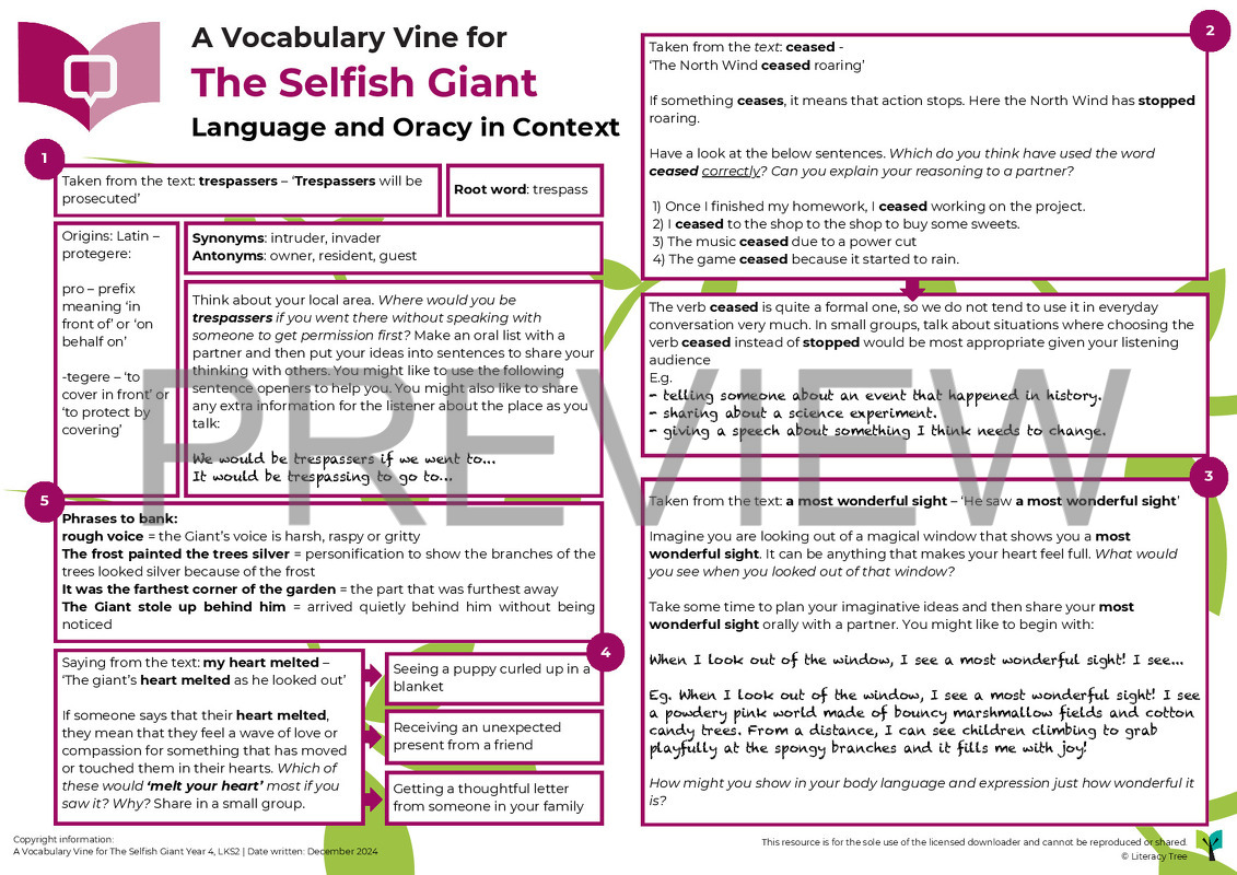 A Vocabulary Vine is designed to be a sister resource to a Writing Root and Spelling Seed. It sits within our wider Teach Through a Text approach by explicitly identifying vocabulary from the book and providing additional opportunities for paired, small group and whole class experimentation with this vocabulary in context. Vocabulary Vines further complement spelling development too through exploration of the morphology (word structure) and etymology (origins) of words. They also provide oracy opportunities through a focus on talk tasks and on oral sentence construction. They are designed for short burst oral and vocabulary development