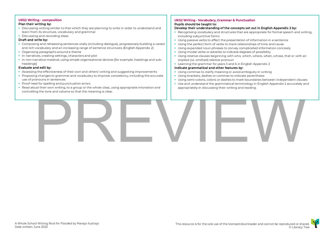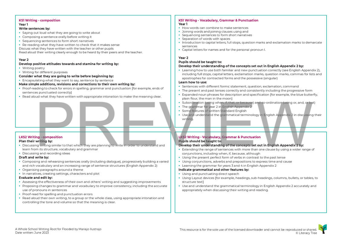 This resource has been designed to be used by an entire school to foster a shared learning experience around one text and to engender written outcomes – some with the same audiences and purposes, some not – that are ‘at pitch’ for each phase/stage but that will also aid revision, catch-up and extension where (and in whichever form) needed. We have planned for activities at different stages through the sequence: grouped simply into key-stages EYFS, KS1 and KS2; or by grouping Reception with Year 1, Year 2 with Year 3 and then Year 4 to Year 6. Where grouping is by Key Stage, there are opportunities for differentiation within to ensure that the pitch of sessions is appropriate. The resource is intended to form the basis upon which schools and teachers can create and shape a sequence of learning that will work well within their context. The sessions could be added to with art activities and through further learning in PSHE, Science, Geography and History.