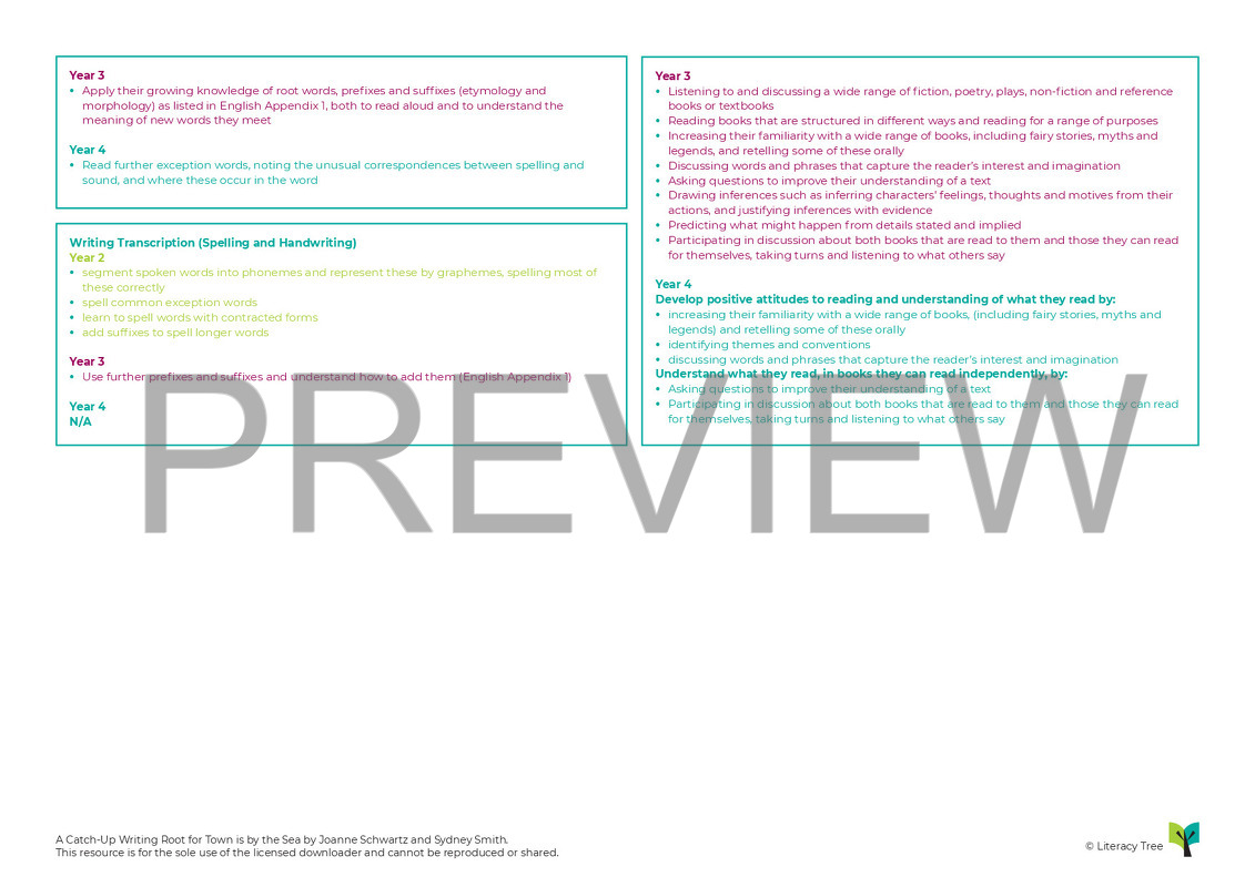 Children arrive to class to find several objects/clues around the text including a postcard; a shell; a piece of charcoal; a clocking-on card. They use these to make inferences before going on to write an instant poem. After making front page predictions around the illustration and title, the children share the story and – amongst other things - write predictions, make comparisons, create a section of dialogue and create a book jacket complete with with blurb and tagline. They then plan and write a narrative sequel, drawing upon the language and structures used by the author so as to emulate the style.