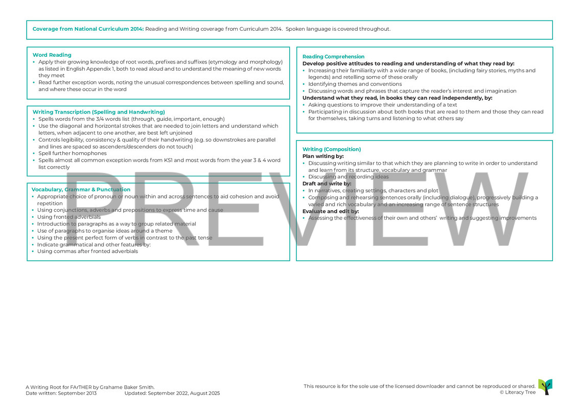 This three-week Writing Root begins by introducing the concept of dreams and how important they are in our lives. It continues by exploring the text through a range of activities that include explicit grammar teaching, opportunities for shorter written outcomes and book talk. Children create a story-map of the key events from the book to write a sequel and create a set of instruction to describe how their own flying machine works. Children finish by writing a longer story about an adventure in a sequel to the text.