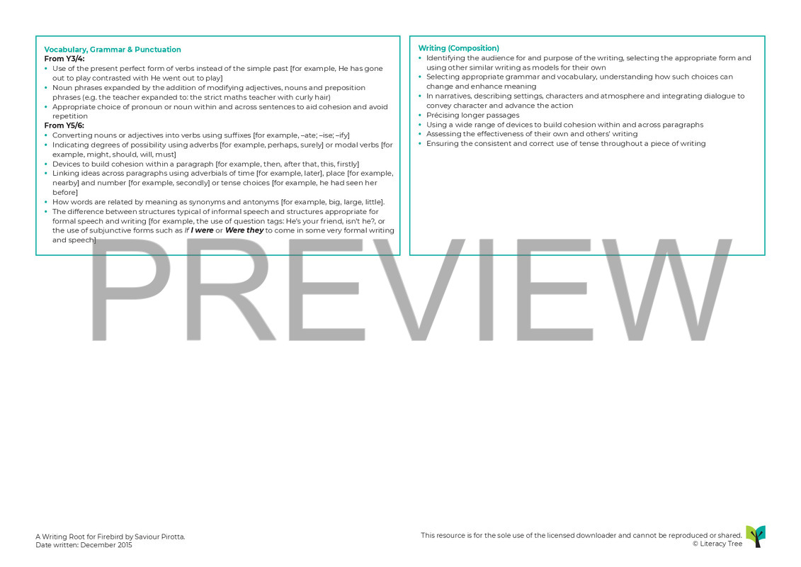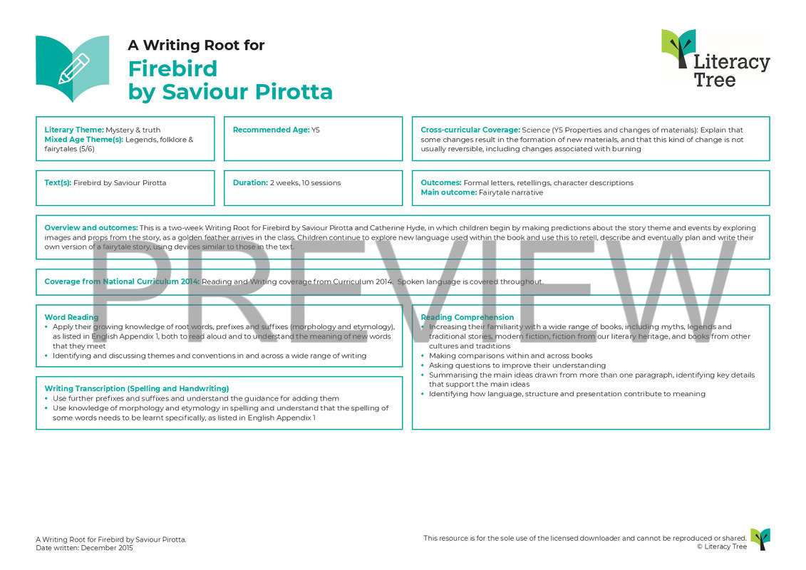 This is a two-week Writing Root for Firebird by Saviour Pirotta and Catherine Hyde, in which children begin by making predictions about the story theme and events by exploring images and props from the story, as a golden feather arrives in the class. Children continue to explore new language used within the book and use this to retell, describe and eventually plan and write their own version of a fairytale story, using devices similar to those in the text.