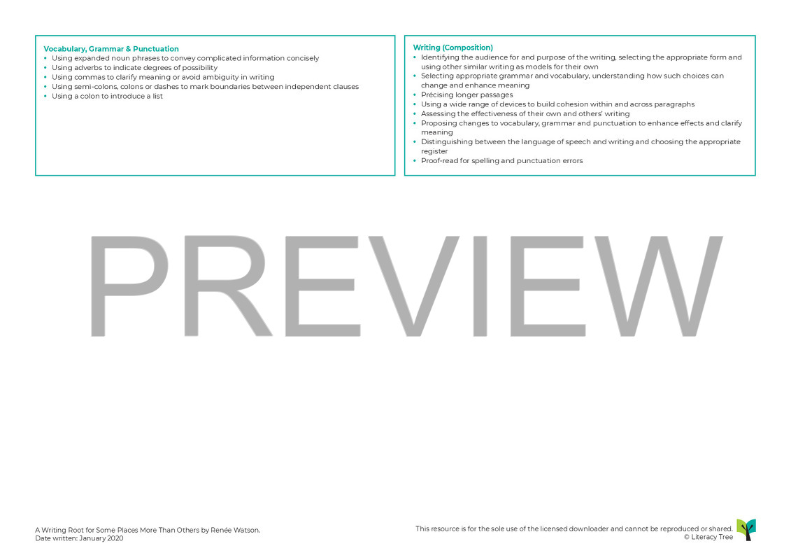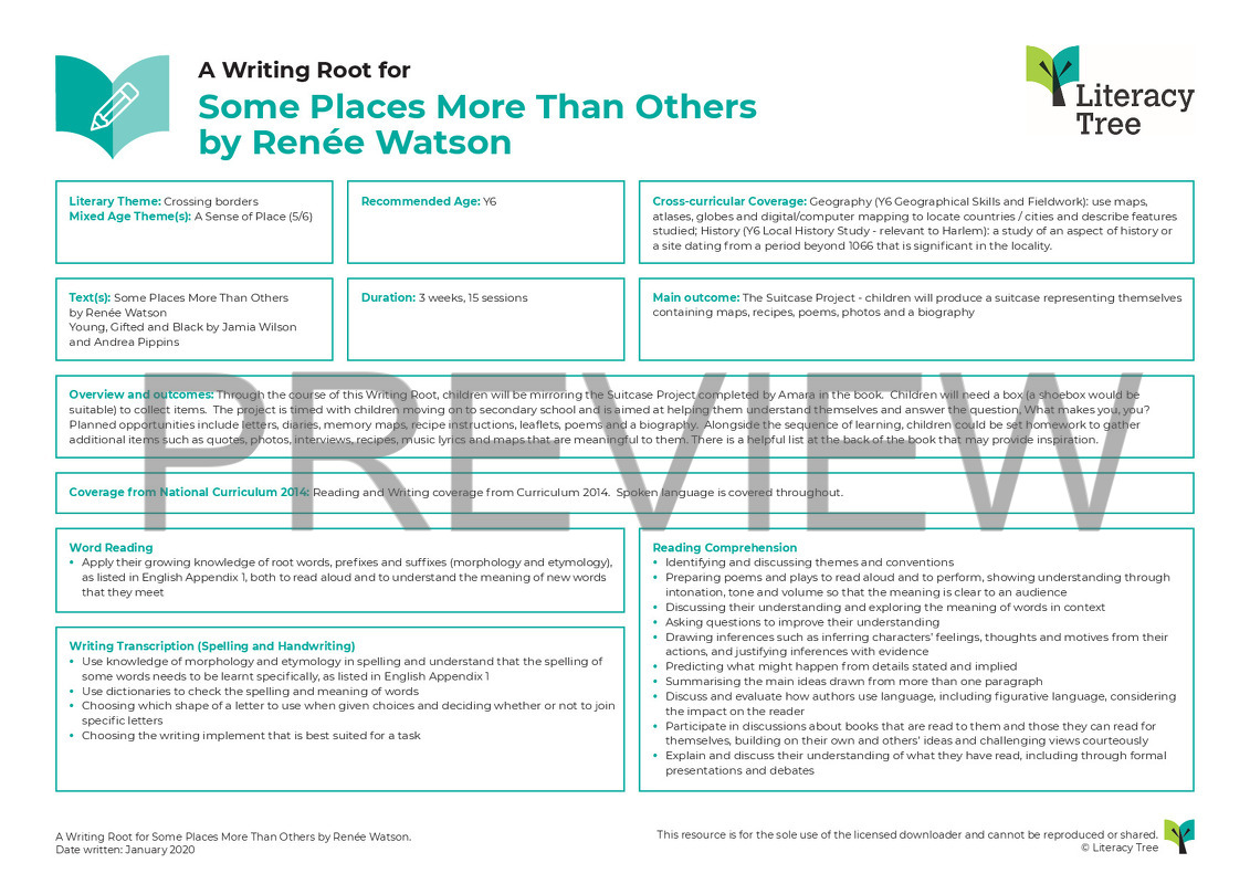 Through the course of this Writing Root, children will be mirroring the Suitcase Project completed by Amara in the book. Children will need a box (a shoebox would be suitable) to collect items. The project is timed with children moving on to secondary school and is aimed at helping them understand themselves and answer the question, What makes you, you? Planned opportunities include letters, diaries, memory maps, recipe instructions, leaflets, poems and a biography. Alongside the sequence of learning, children could be set homework to gather additional items such as quotes, photos, interviews, recipes, music lyrics and maps that are meaningful to them. There is a helpful list at the back of the book that may provide inspiration.