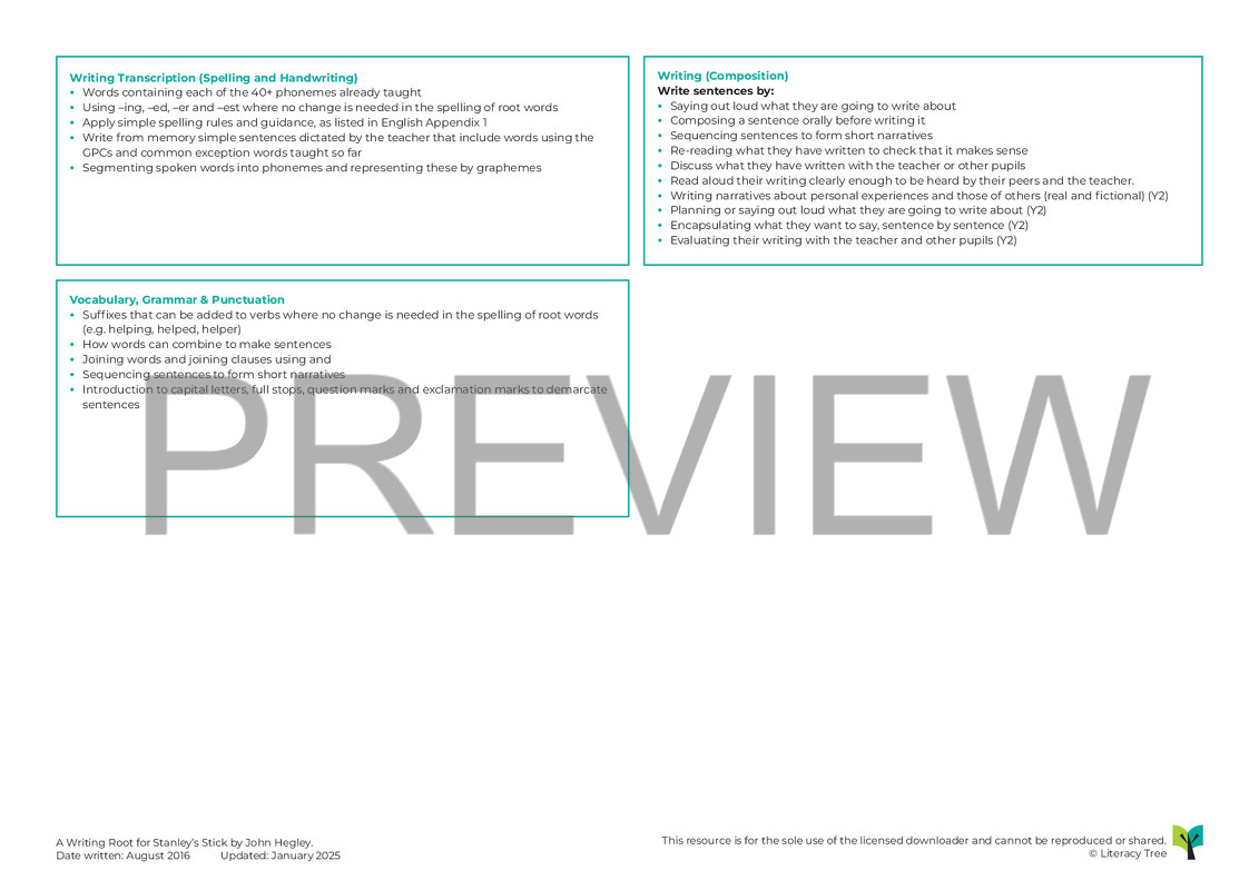 NB: This is an updated, 3 week version of the Writing Root for Stanley's Stick. If you would like the original 10 session Writing Root, please get in touch.